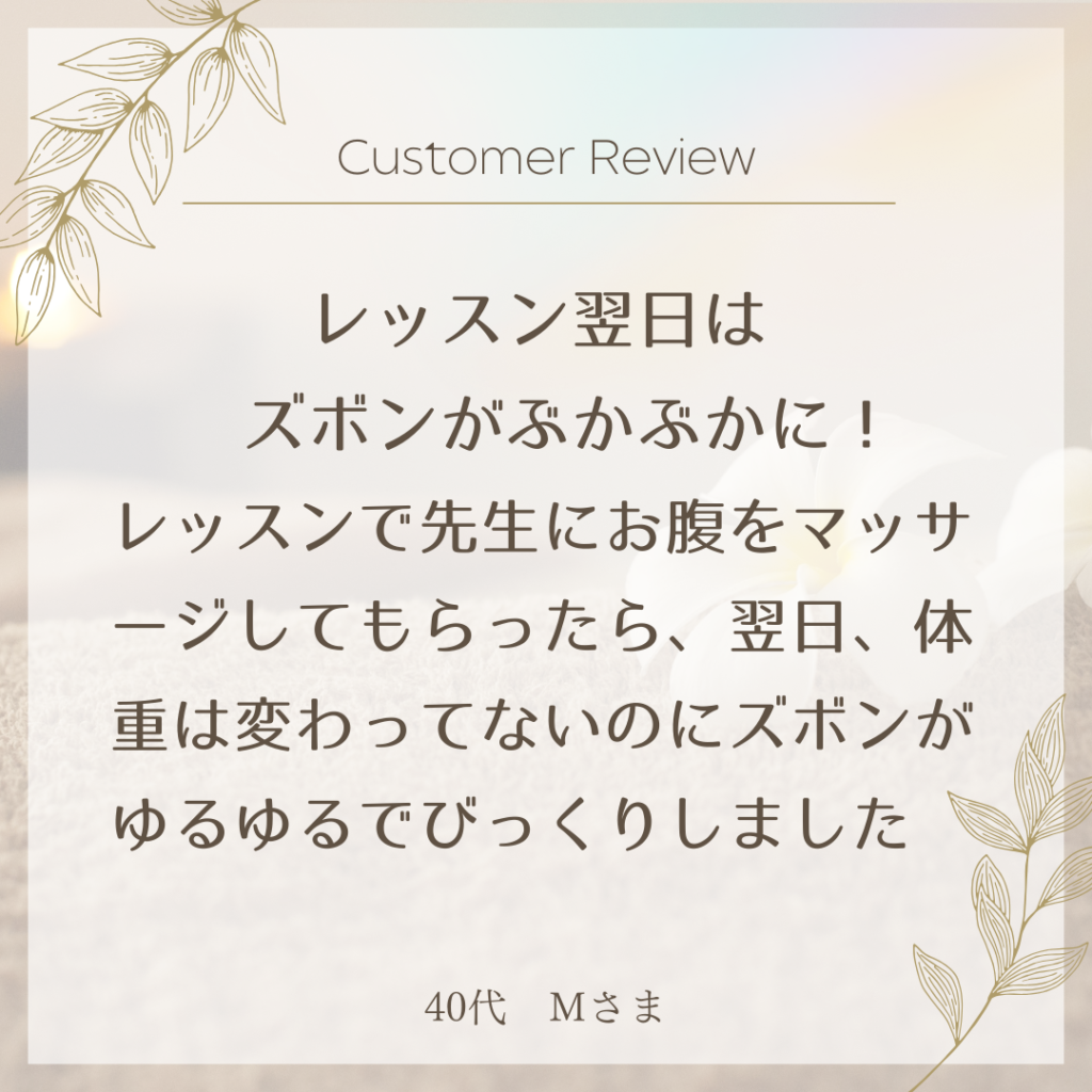 【生徒さんの声】「先生にお腹をもんでもらったらペタンコに!」